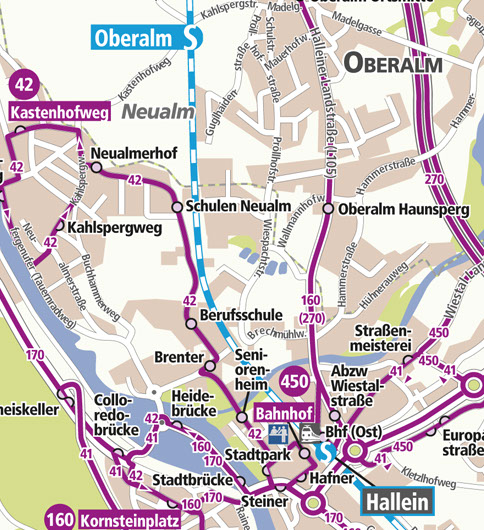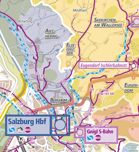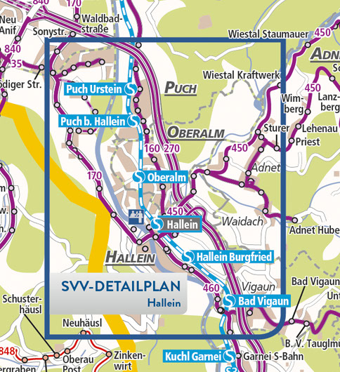 Ausschnitt aus dem Gesamtliniennetzplan "Bundesland Salzburg" Ansicht der einzelnen Planungsregionen - interne Ansicht