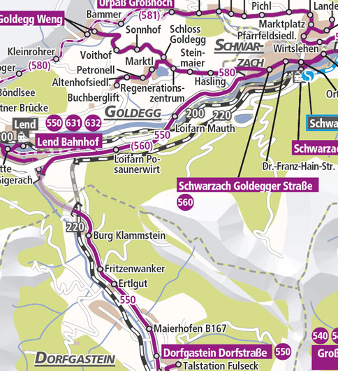 Ausschnitt aus dem Gesamtliniennetzplan "Bundesland Salzburg"
